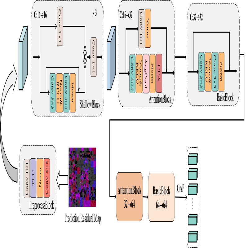 为解决上述问题,本文首先针对基于失真补偿的变换系数隐写失真进行了理论建模。通过分析发现,此类隐写留下的痕迹在预测残差域中呈现出“中心化”的特征表现模式。为进一步提升隐写分析的信噪比,并降低环路滤波等编码环节对隐写痕迹的干扰,本文提出以“预测残差图”作为隐写分析的核心对象,以增强检测过程的针对性。
